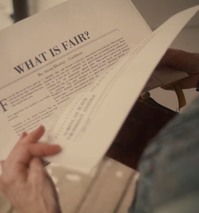 And here I must turn back to Anne with an E and its long-lasting impact in my life. The show’s final series stands as its most significant departure from the books it adapts. There is nothing like Ka’kwet’s plot in the novels. There are no Mary and Sebastian in Montgomery, so we don’t have Gilbert’s crisis. There are parallels to Pride and Prejudice and of course, Joe Wright’s movie comes to mind before Austen’s novel does when Anne compares her dance scene with Gilbert to Elizabeth and Darcy’s. With no subplot about consent, there is no need for Anne to rally against the patriarchy in a newspaper. Gilbert Blythe never manifests any desire to go to France. And yet. I feel that this alternative universe caught somewhere between the spirit of Montgomery’s world and our own pays better homage to Montgomery’s books than a mere new take on Kevin Sullivan’s brilliant films could possibly deliver. It just works.